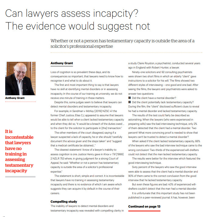 Also see Anthony Grant: Can lawyers assess incapacity?