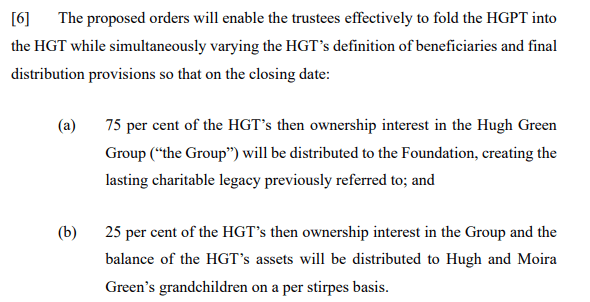 Importantly at [24] it is noted that “[Hugh Green] recognised the burden and demotivating influence of extreme intergenerational wealth.”