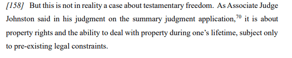 This is an important case for me to read as my adult children who were abandoned by their father when they were toddlers have recently learned of his death in New Zealand and that he had formed a trust specifically to exclude them from inheriting anything from his estate, despite the Family Protection Act. Thank you for posting.