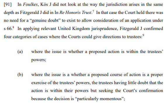Trustees seek directions pursuant to section 133 of the Trusts Act to have the benefit of the protections of section 134 of the Trusts Act.