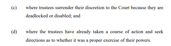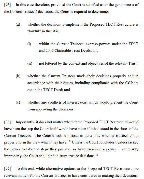 The issues for the Court are illustrative of the approach taken to what is essentially an application for a momentous decision to be approved (sometimes referred to “blessed”). As set out at [10]: