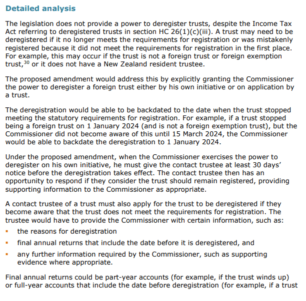 - an explicit power for the Commissioner of Inland Revenue to deregister a trust if the trust does not meet the requirements for registration under section 59B of the Tax Administration Act 1994. This power would be exercised on the Commissioner’s own initiative or on application by the trust