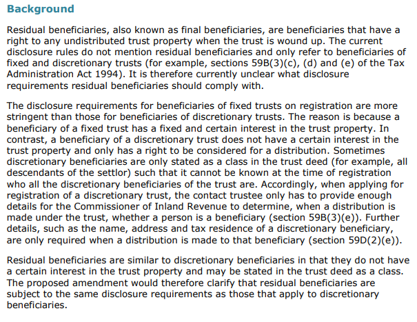 - clarify that residual (final) beneficiaries are subject to the same disclosure requirements as discretionary beneficiaries.