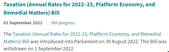 Taxation (Annual Rates for 2022–23, Platform Economy, and Remedial Matters) Bill (No 2) 164-1 (2022), Government Bill Contents – New Zealand Legislation on 8 September 2022