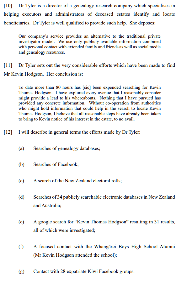 The 2023 judgment sets out the efforts taken to find Mr Hodgson in some detail at [10] to [12]: