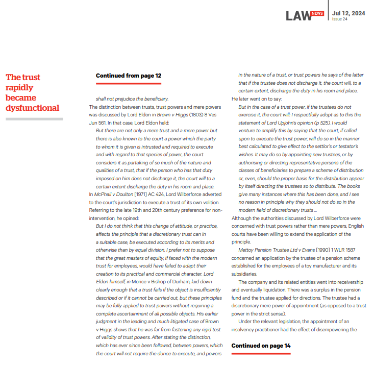 Also see Luke Dixon’s article in the Law News 12 July 2024: