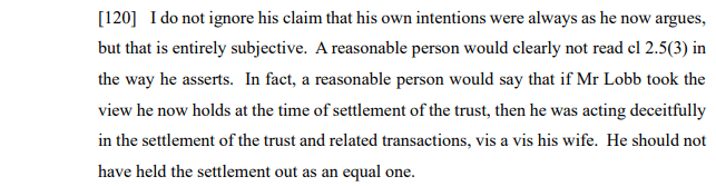 Given the particular facts and animosity between the parties, it may that Ryan v Lobb can be limited to its own facts. However, it is noted that the orders made addressed the fact that there was no trustee.