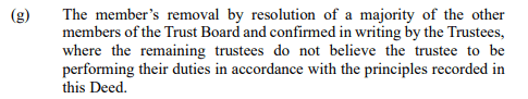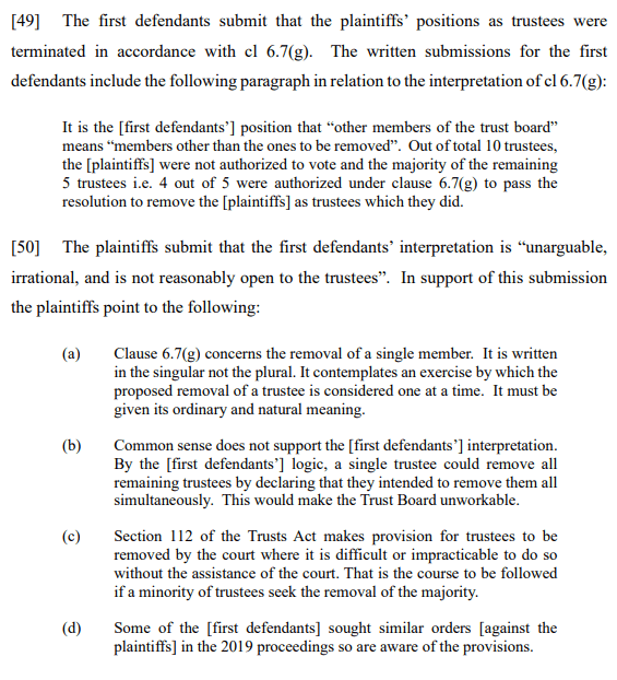 In the context of the case at hand, trustees were removed on the basis of decisions made (the validity of which was not determined by the court) as to the suitability of certain trustees. While trustee fitness for purpose can be an entirely relevant consideration; the starting point of any enquiry will be the terms of the trust.