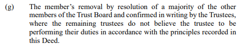 In the context of the case at hand, trustees were removed on the basis of decisions made (the validity of which was not determined by the court) as to the suitability of certain trustees. While trustee fitness for purpose can be an entirely relevant consideration; the starting point of any enquiry will be the terms of the trust.