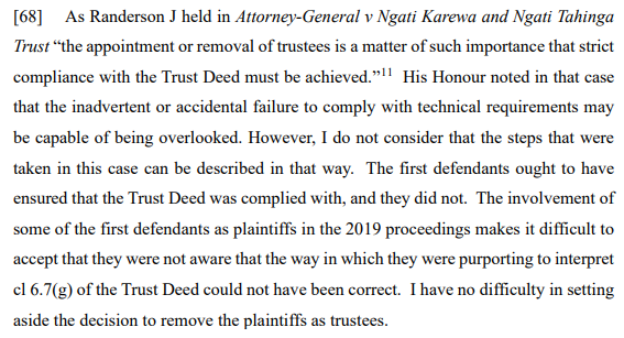 Where trustees are invalidly appointed, their position is essentially void ab intio, notwithstanding any lack of wrongdoing on their part. This is clearly set out at [69] to [70] as follows: