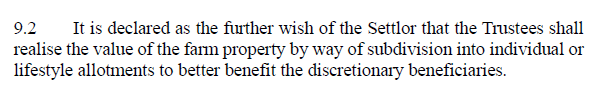 The trust that is the subject of these proceedings, the Ashely Trust (the Trust), was settled by Jim and Edna in 2004 for the specific purposes of owing and developing land in the Nelson Region, the terms of the Trust specifying that: