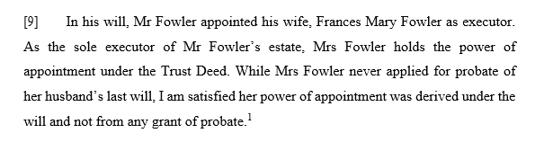 When powers of appointment are derived through a will there can be uncertainty as to whether such powers can be exercised before a grant of probate or where probate is not required as there are no assets above the prescribed amounts specified in the Administration Act.