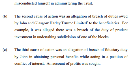 The Supreme Court has denied leave to appeal the Court of Appeal decision in McLaughlin v McLaughlin, which relates to a long-standing challenge regarding the trusteeship of a family trust and allegations of breaches of trust brought by brothers of one of the trustees. The original causes of action were: