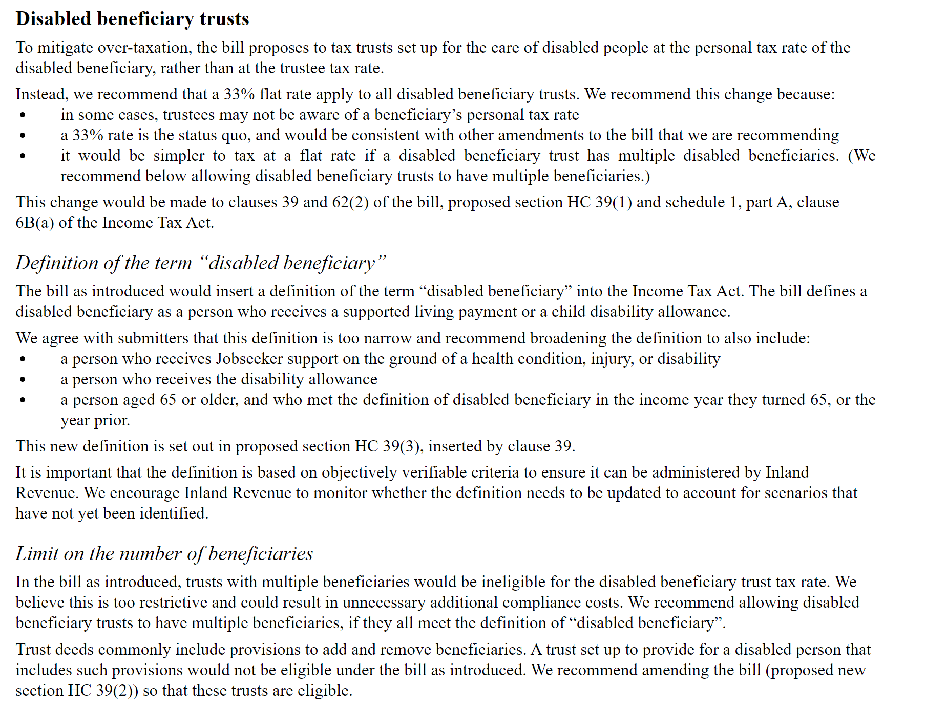 - an amended HC 39 to provide that trusts settled for disabled beneficiaries (as defined) will continue to be taxed at the 33% rate, and