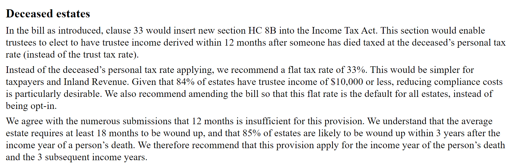 - an amended section HC B allowing three years from the year of the date of death before the 39% rate will apply to deceased estates