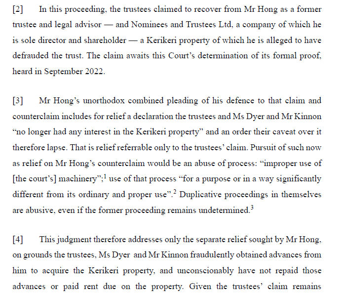 Kinnon v Hong is another matter before the courts were the words have perhaps gotten in the path of resolution. As noted by Jagose J at [2] to [4]: