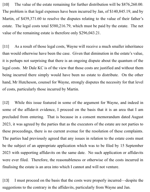 - the trustees could have decided to do more to assist the protagonist beneficiary and to accede to his wishes. That said, the decision not to was “well reasoned and considered and certainly well within the terms of the trust deed and their own complete discretion in light of what they know about all the siblings”. As stated by Becroft J at [49] “… Putting the question another way “was it reasonably open to them not to do more for Wayne in all the circumstances?” In my view it certainly was.”