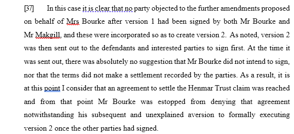 Also see Bourke v Bourke regarding the enforceability of a settlement agreement. As noted at [20] in that case: