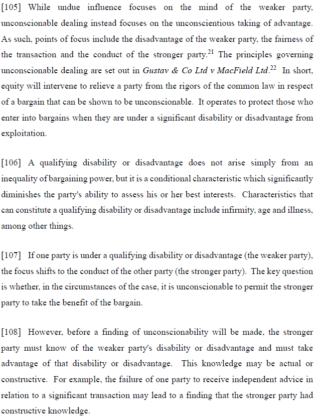 The transaction involving Enid’s house was also unconsionable. As set out at [105] to [108]: