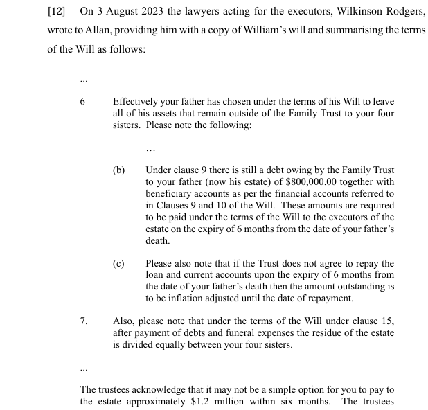 Mirkin v Frame relates to a summary judgment application by executors of an estate against trustees of a family trust to recover the deceased beneficiary’s current account. The background of the matter is set out at [12] by Associate Judge Paulsen as follows: