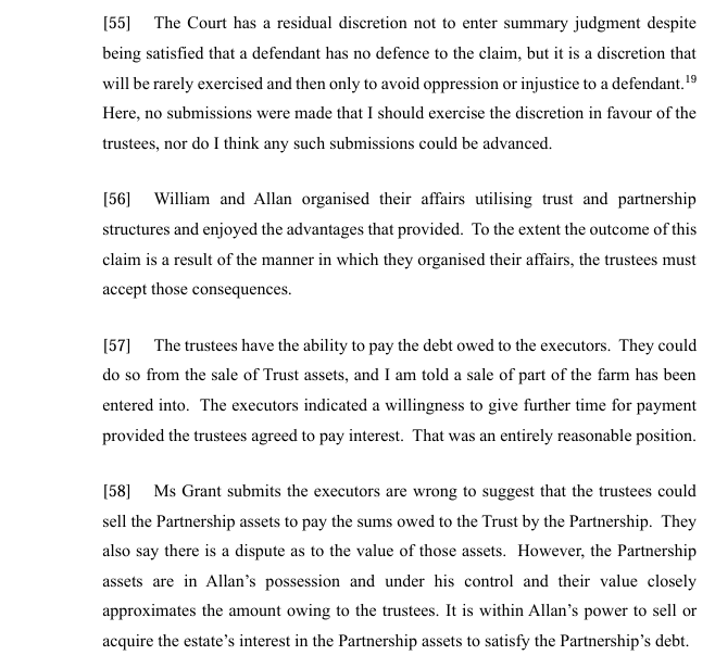 The court held that the executors were entitled to summary judgment in respect of the current account and the debt owing.