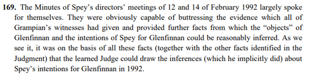 At [53] the Board stated that it “… is fully satisfied that when Winder J referred to “Spey’s intention” he was using that as shorthand for saying the intention (ie the wish and intention) of all (or a majority) of the board of directors of Spey. It follows from the reasons we have given that, in the Board’s view, the judge was entitled to make that finding and he was applying the correct legal test of corporate attribution.”