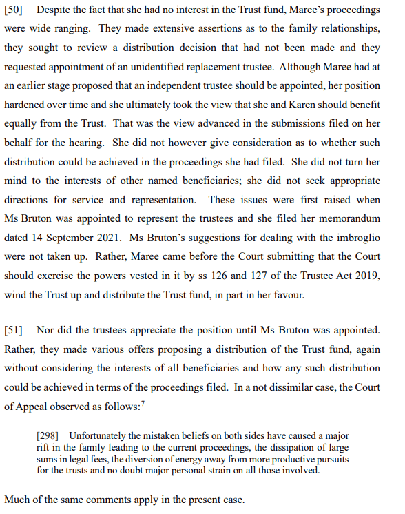 In attempting to avoid the liability the trustees had to Mr Perkins they were required, pursuant to his indemnity as a trustee to meet his costs on an indemnity (full) basis.